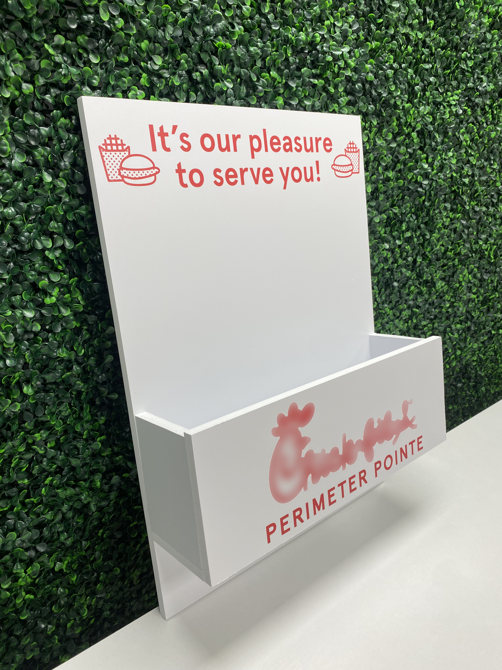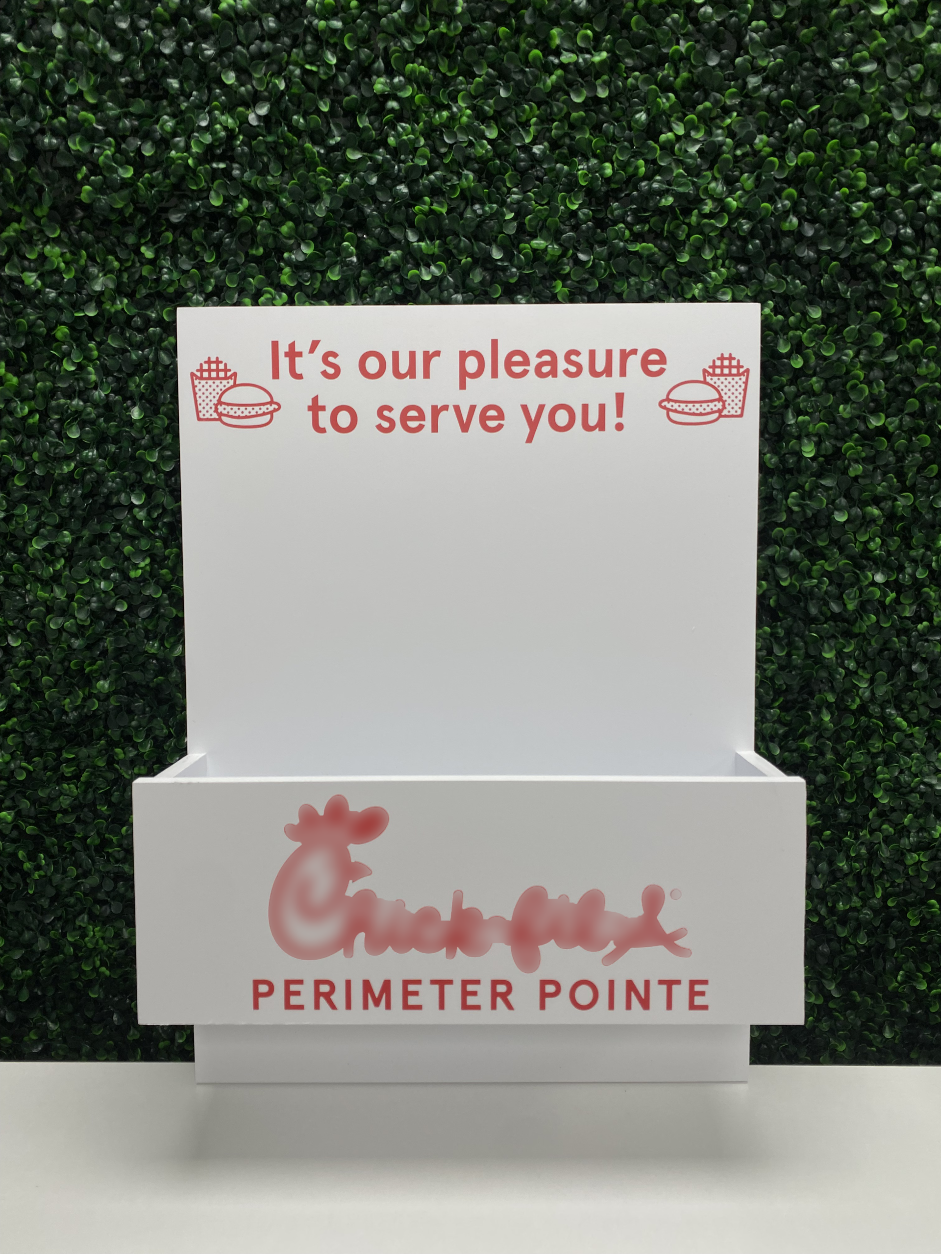Signs by SI’s hand made Chick-fil-A Flower Box is the perfect addition to your entry way in your store. We customize the front part with your store name and logo. Fake florals are not included, not made for real florals.