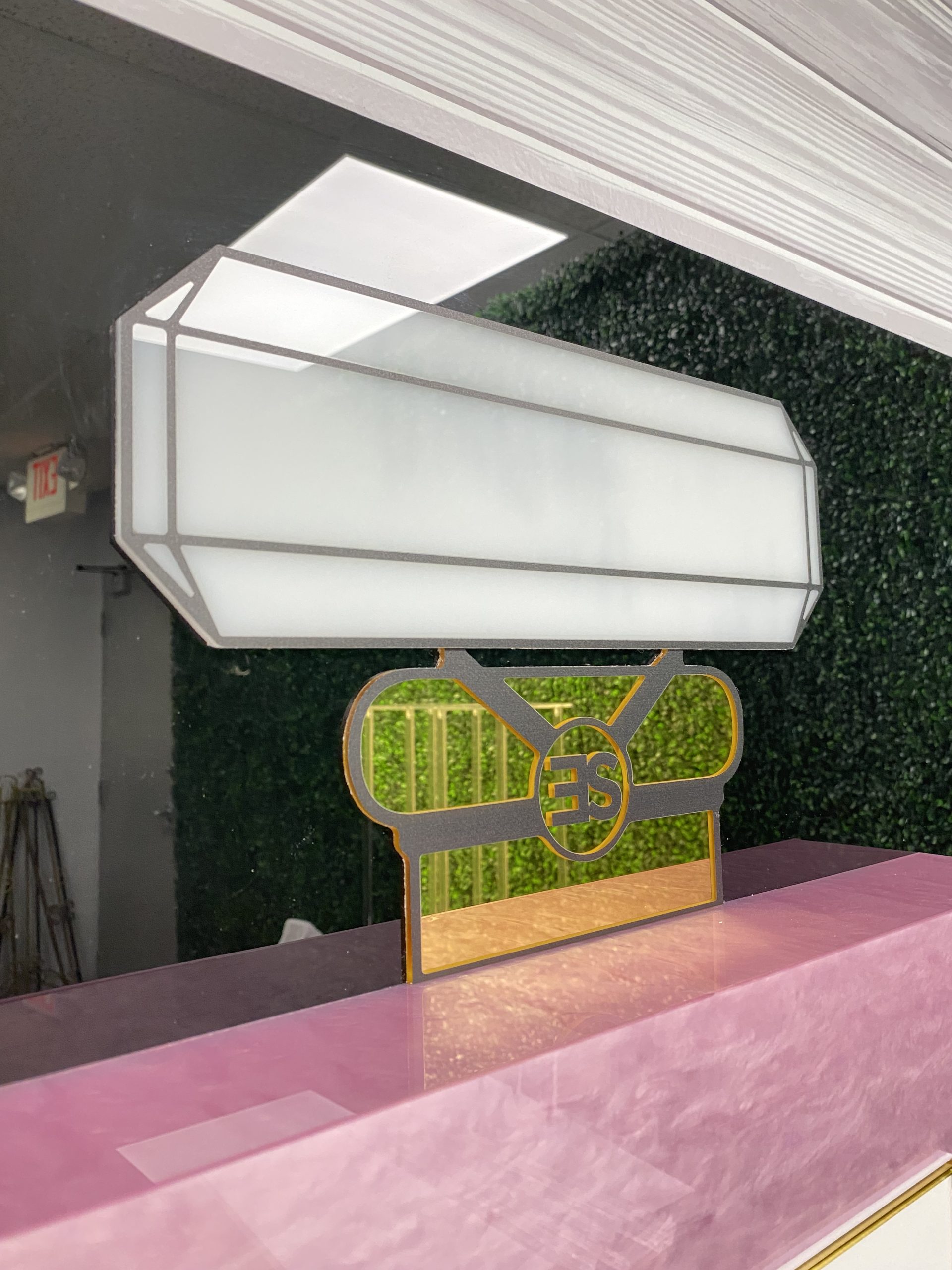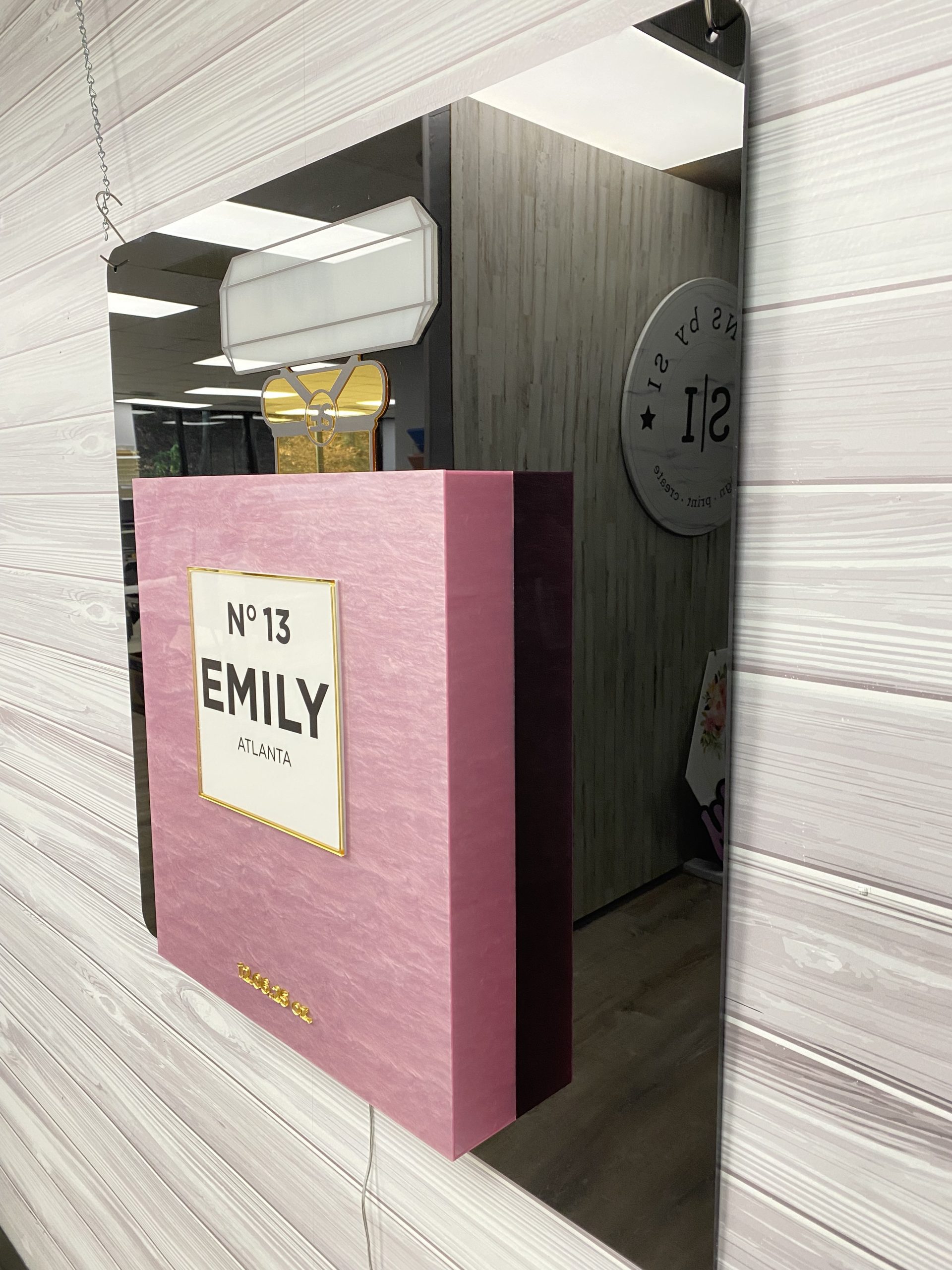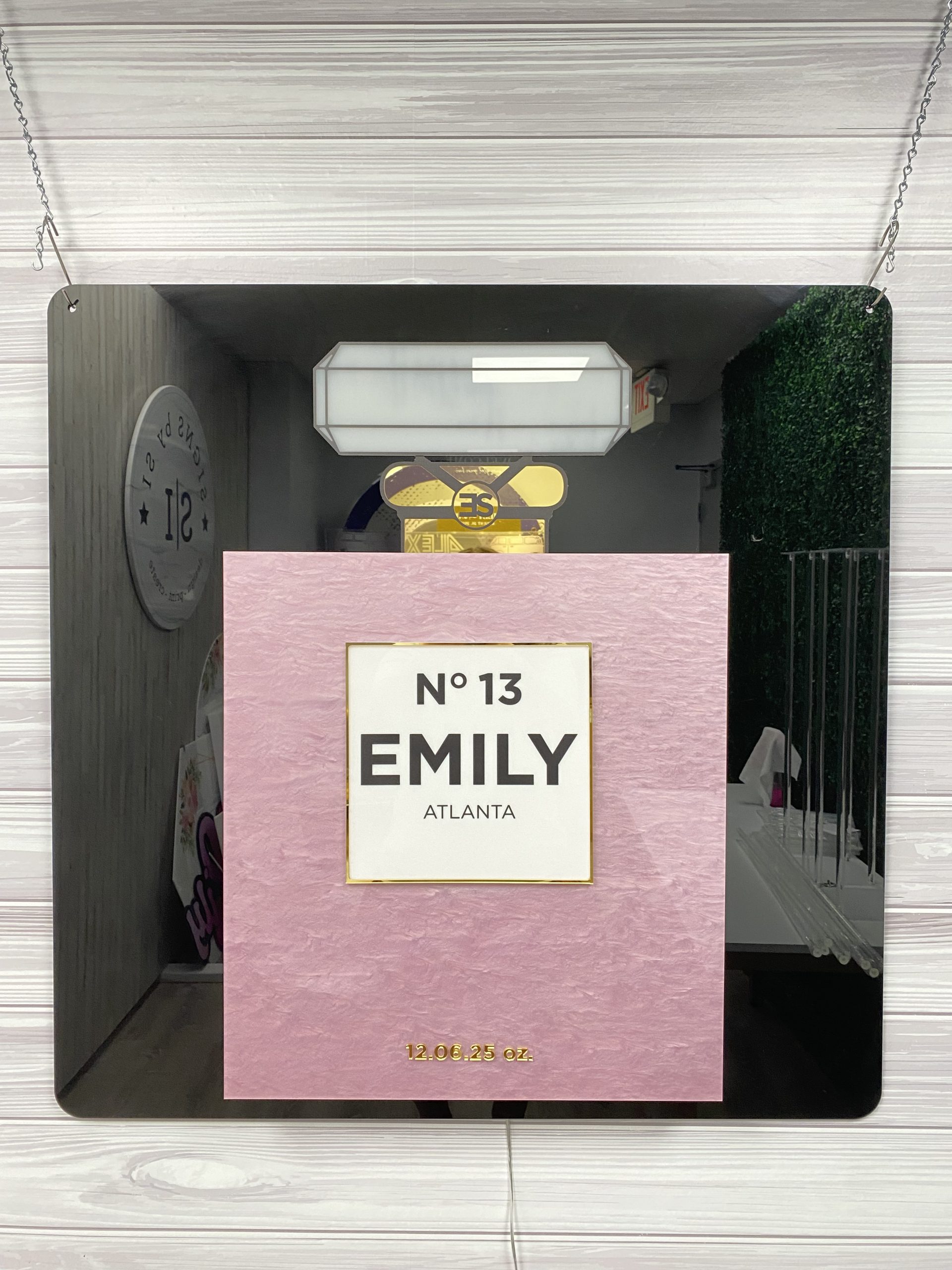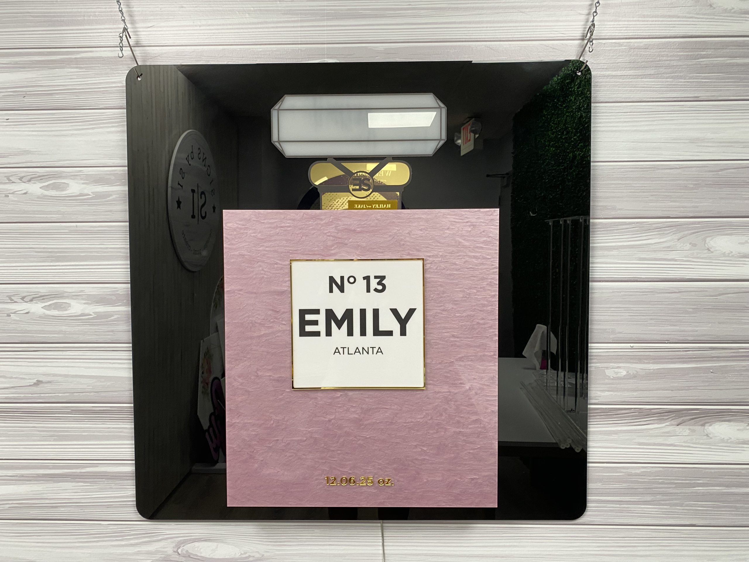 Call, text, or email for quote orders@signsbysi.com 404-272-6367. Custom Chanel Inspired Perfume Bottle Layered 3D  Acrylic + Neon Accent Sign In Board for Events, Wedding, Bar/Bat Mitzvahs