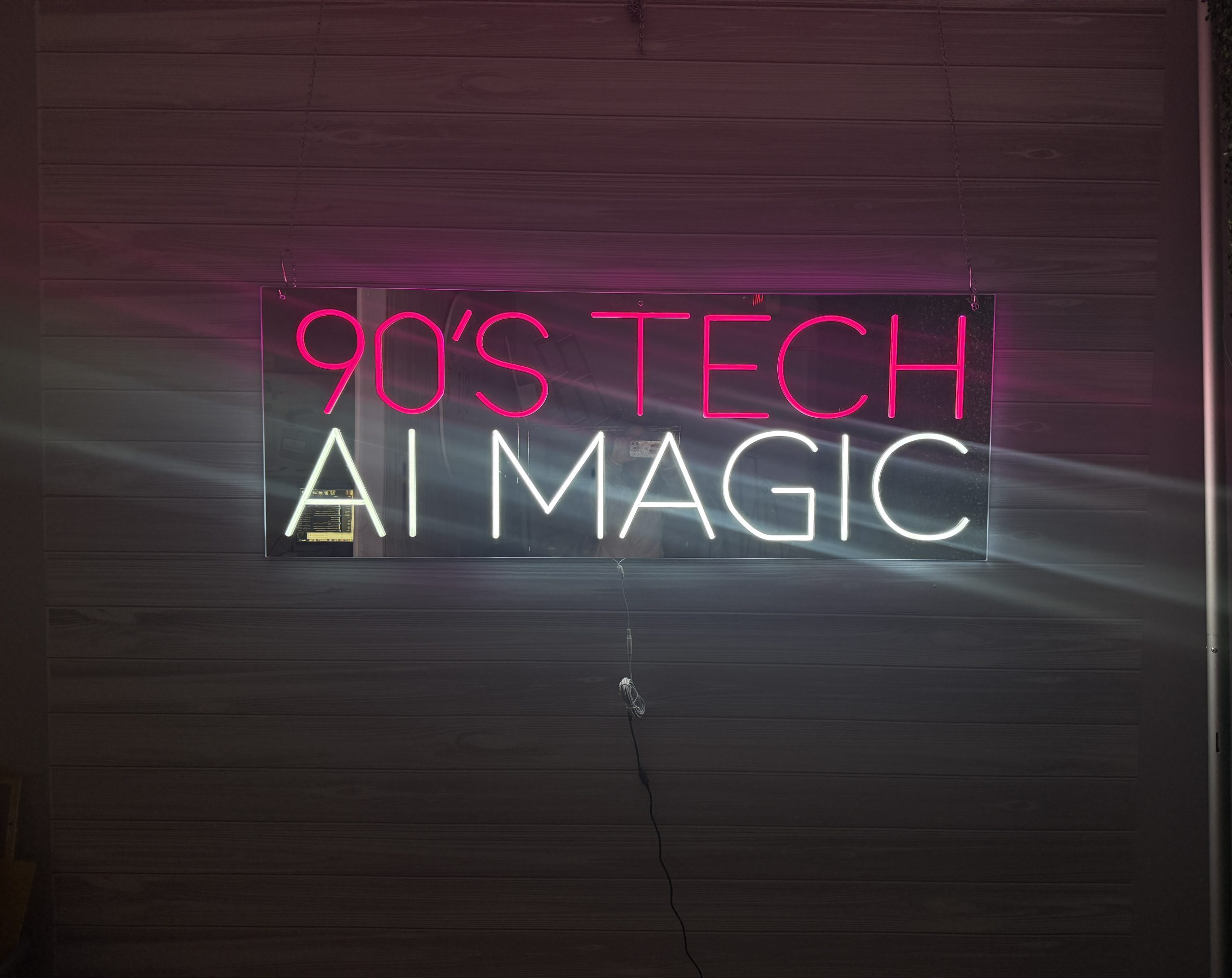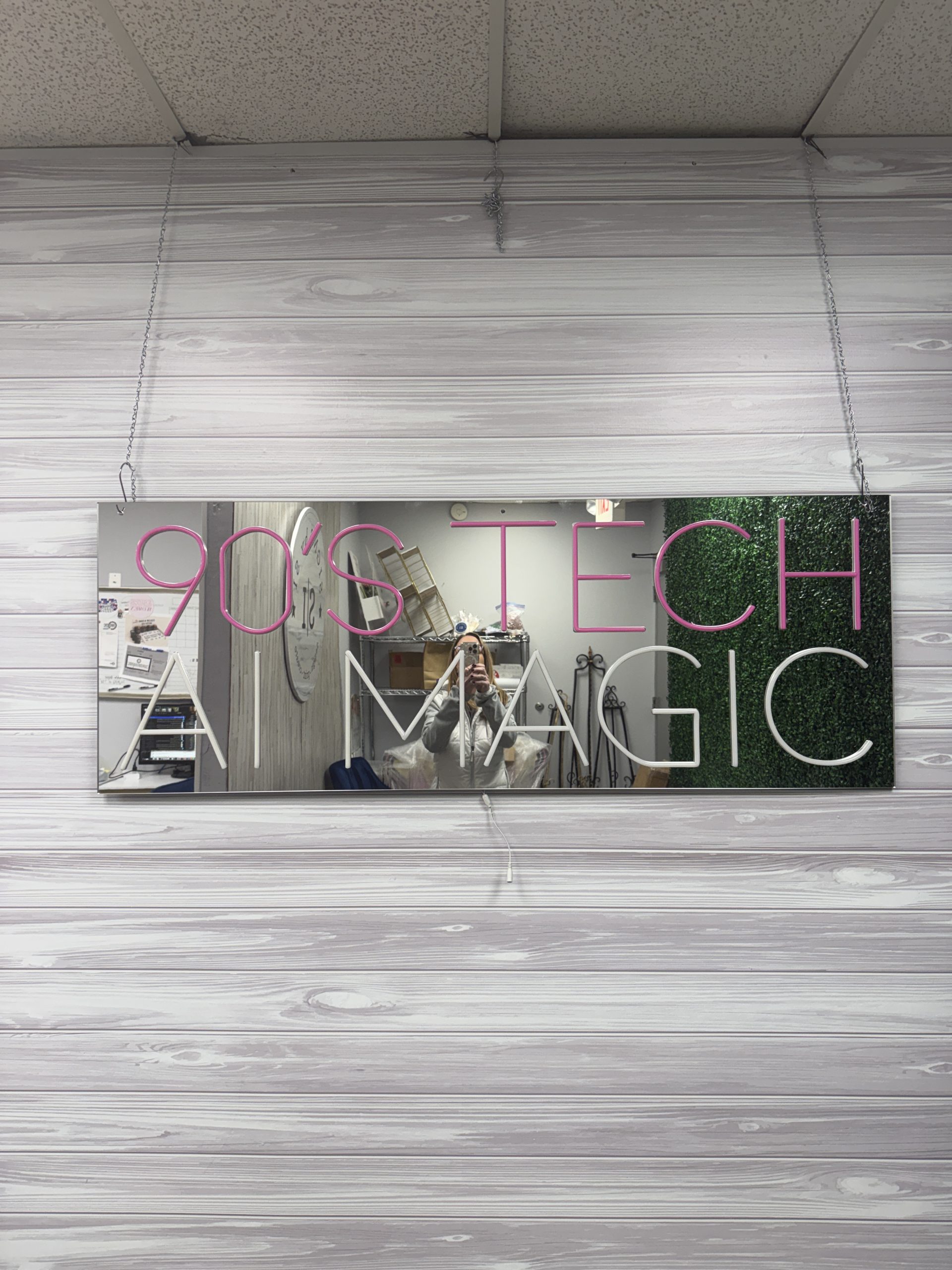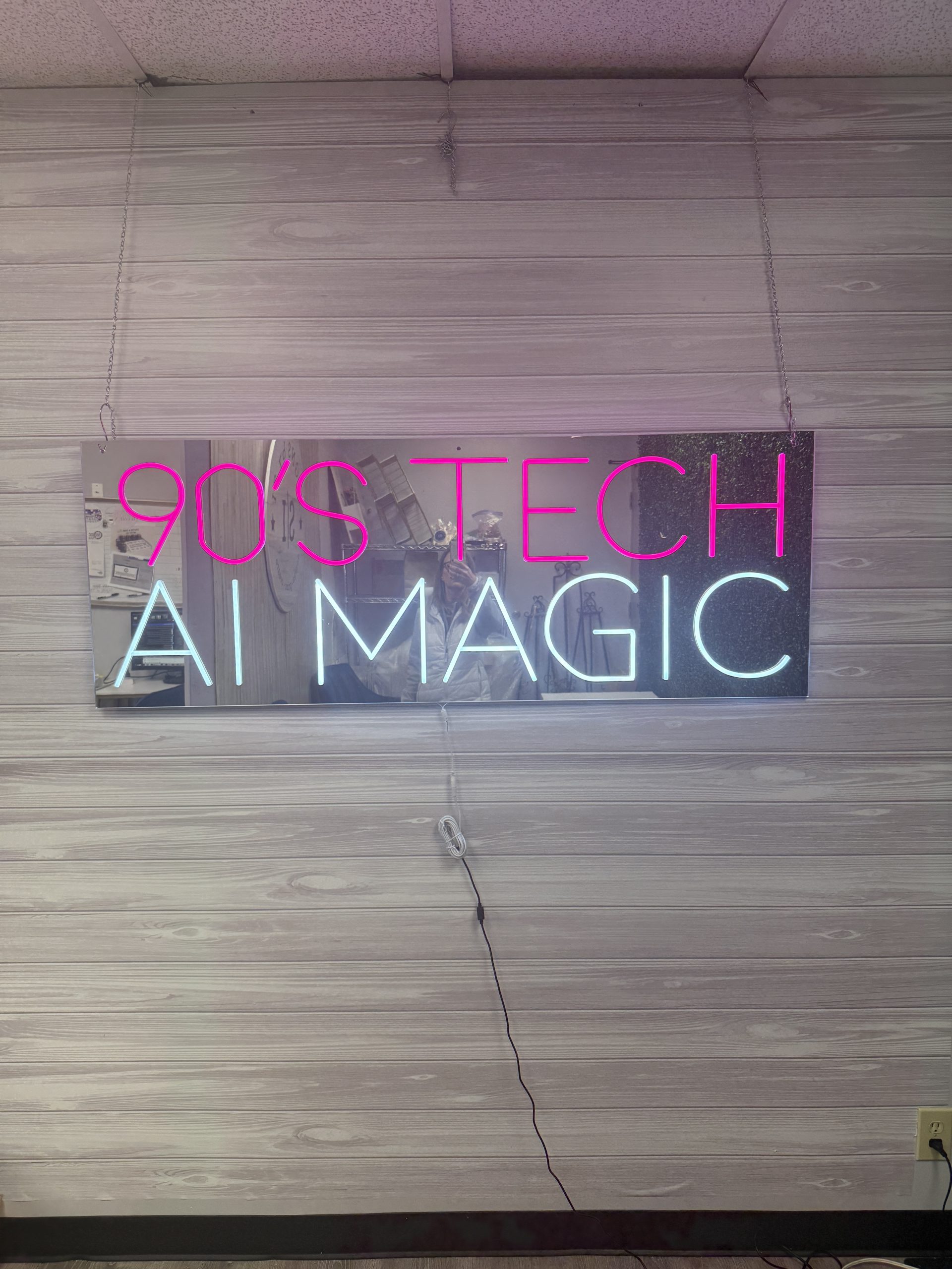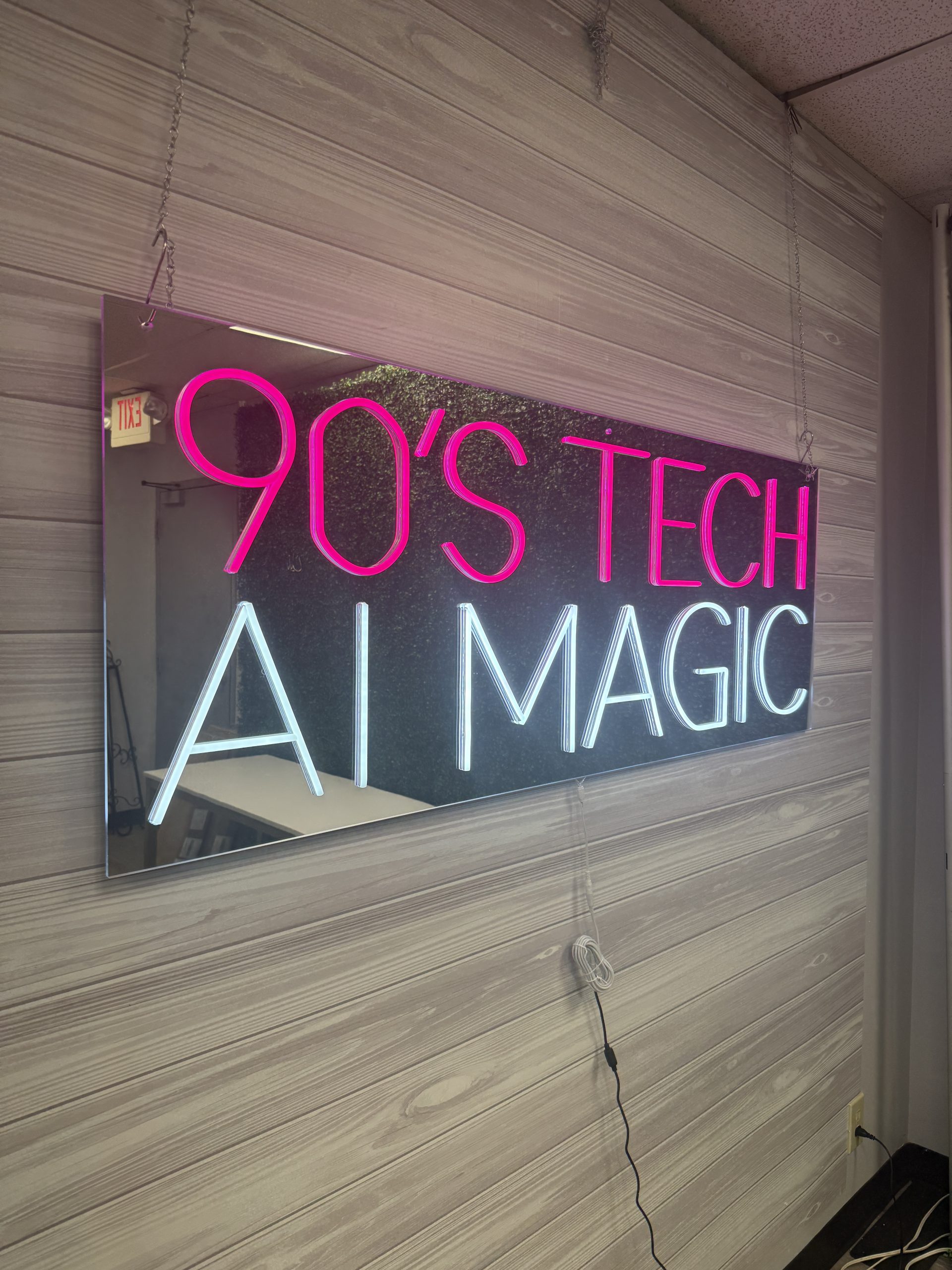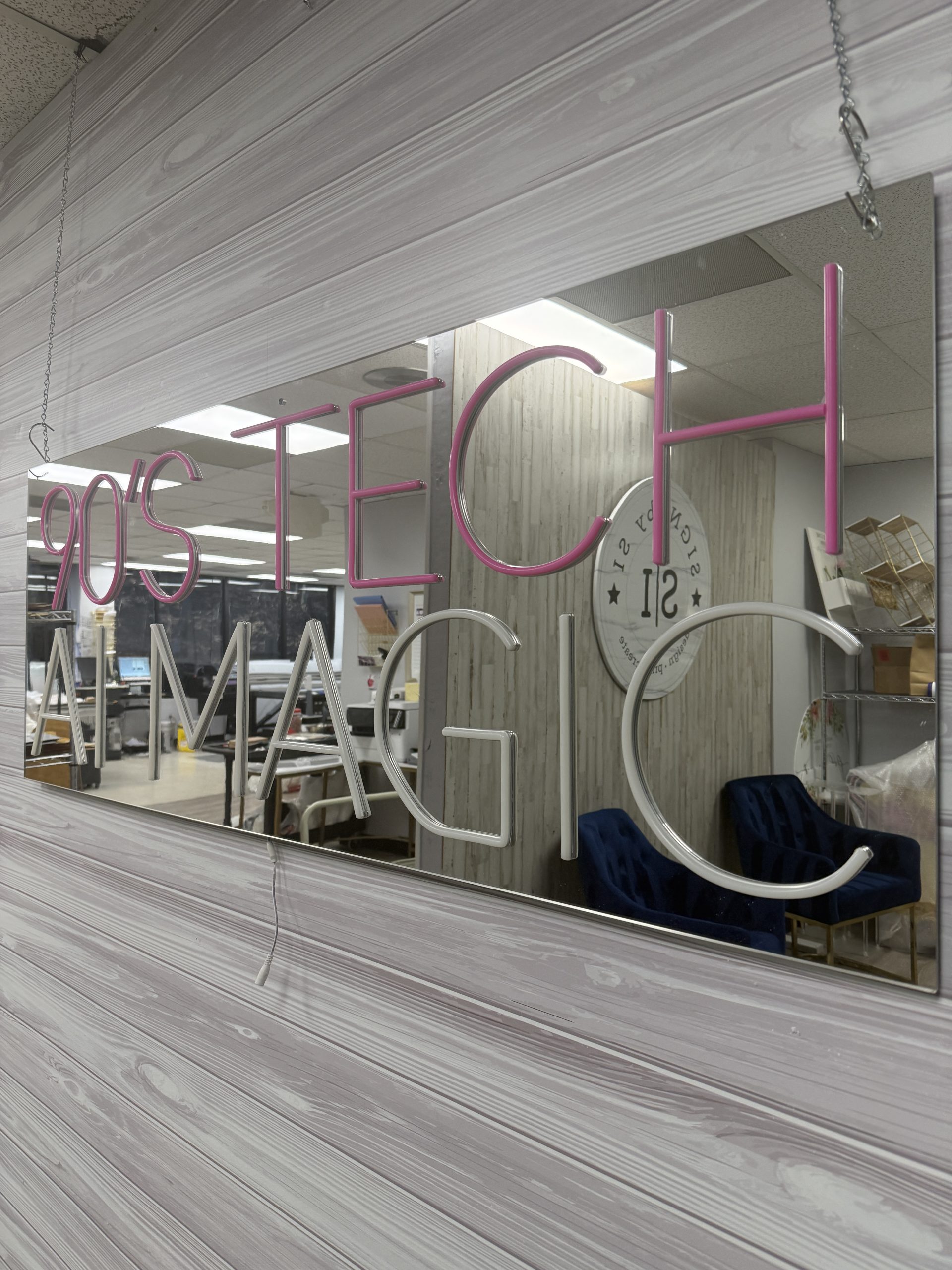 Use this custom mirrored acrylic neon accent sign as a standout welcome display, brand name sign, photo booth backdrop, or key décor element that transforms ordinary spaces into extraordinary experiences. From business networking events to milestone celebrations like weddings and bar/bat mitzvahs, it’s a versatile décor solution that blends functionality with show-stopping style.