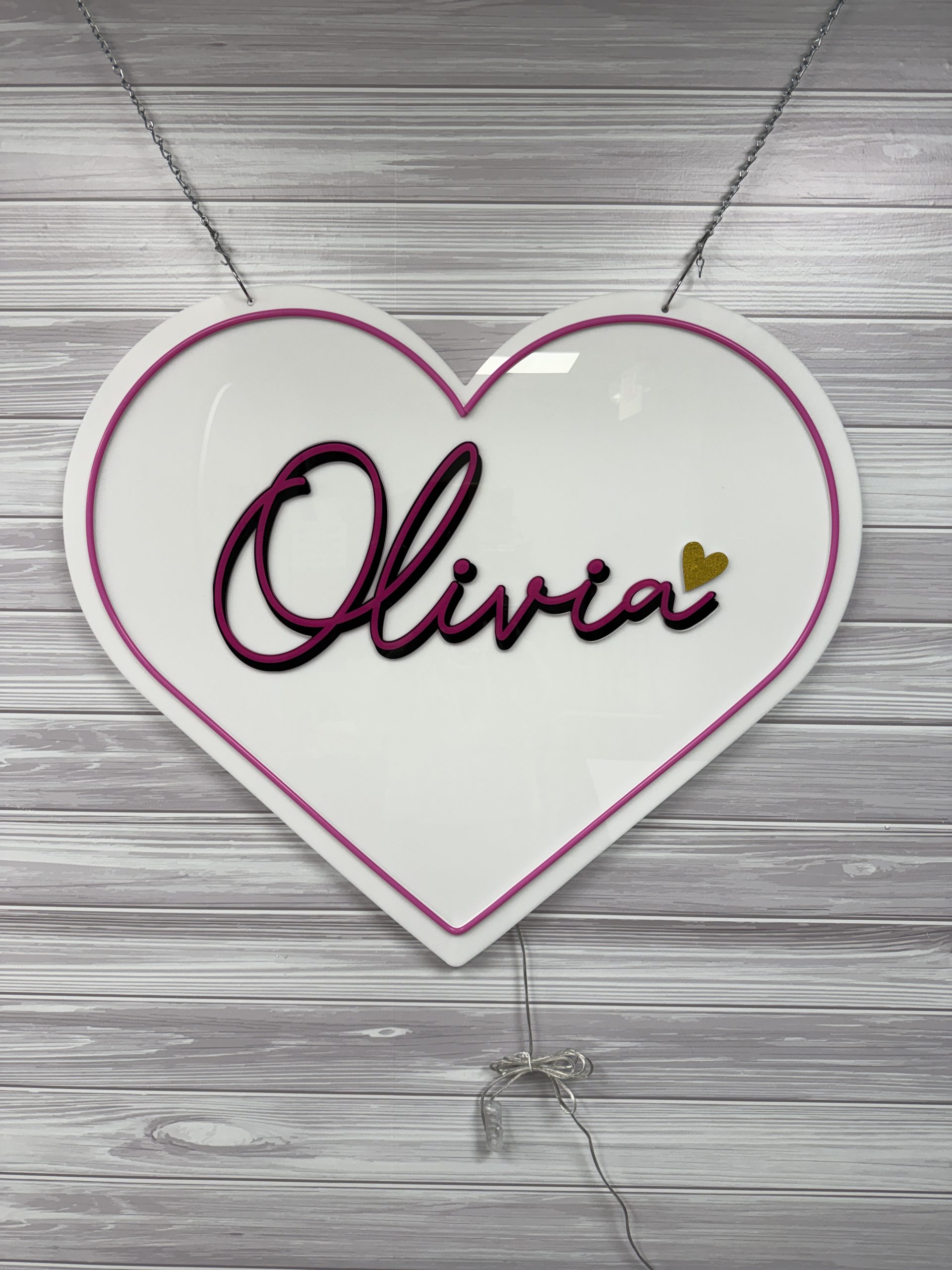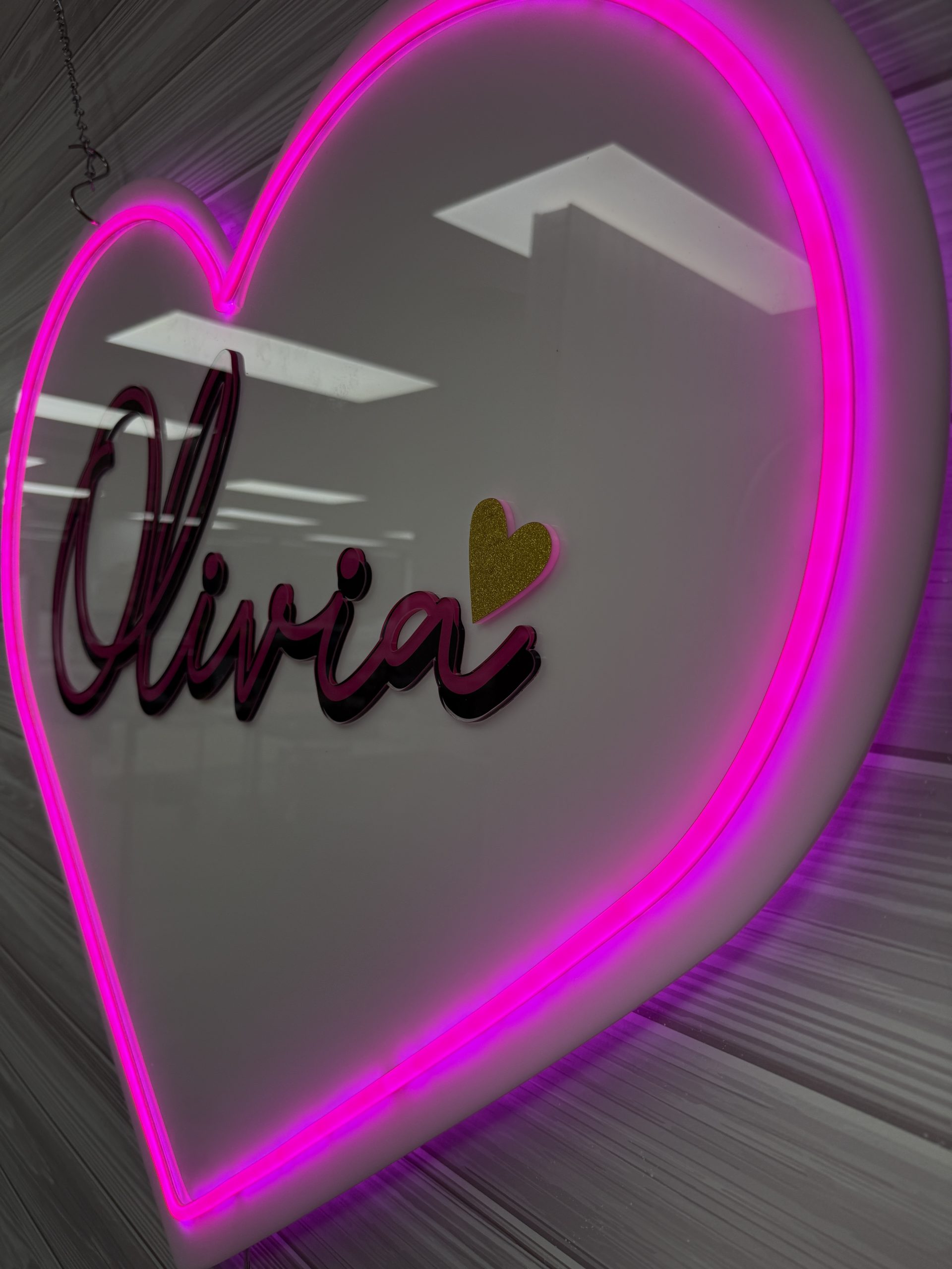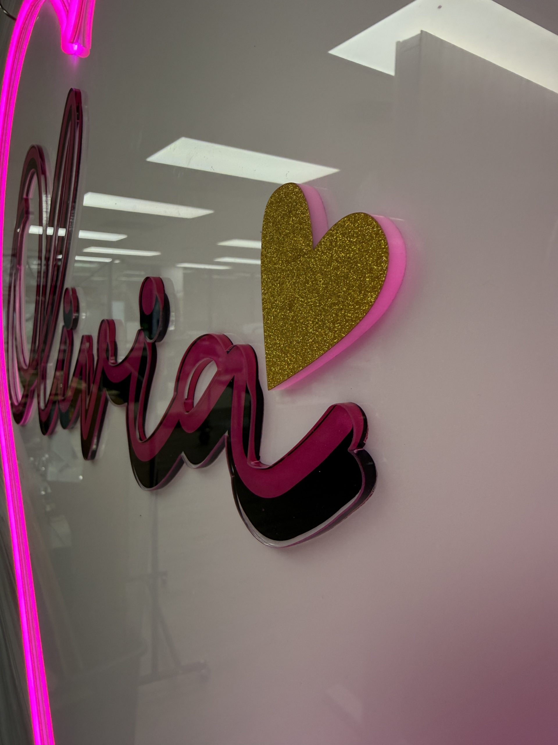 Gold Glitter Heart Acrylic Neon Sign-In Board – Custom Glam Bat Mitzvah, Sweet 16 & Wedding Event Sign