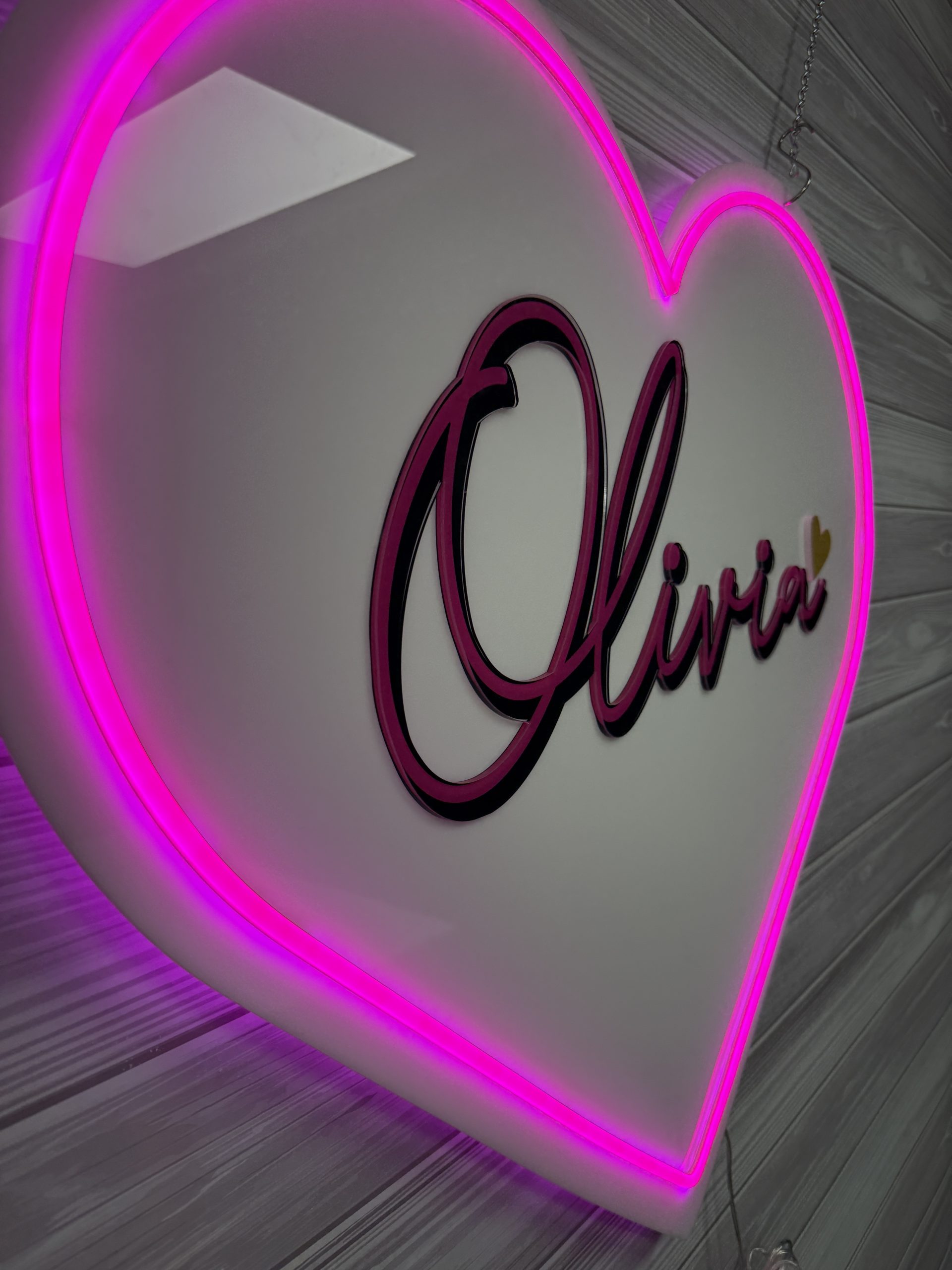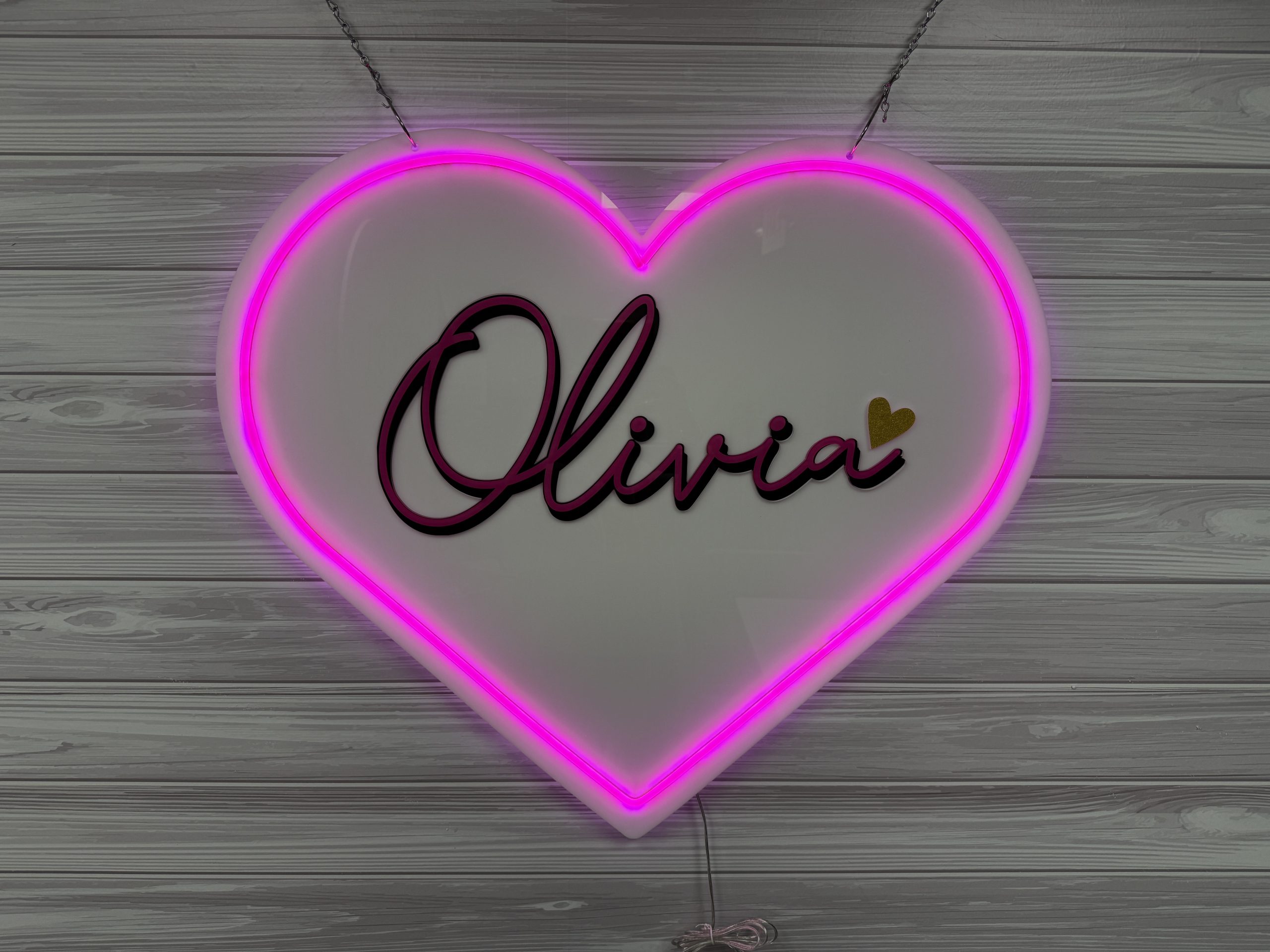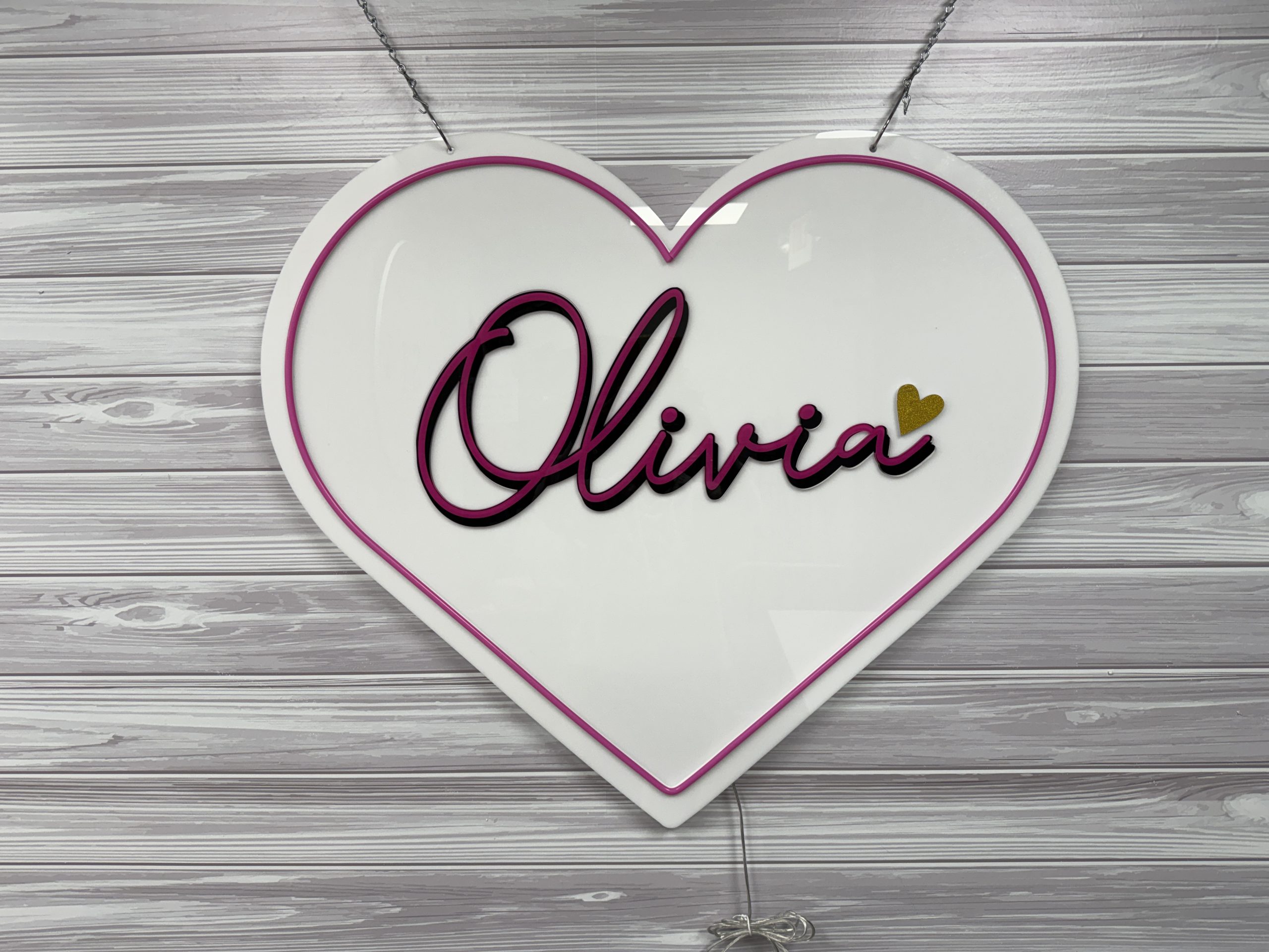 Gold Glitter Heart Acrylic Neon Sign-In Board – Custom Glam Bat Mitzvah, Sweet 16 & Wedding Event Sign