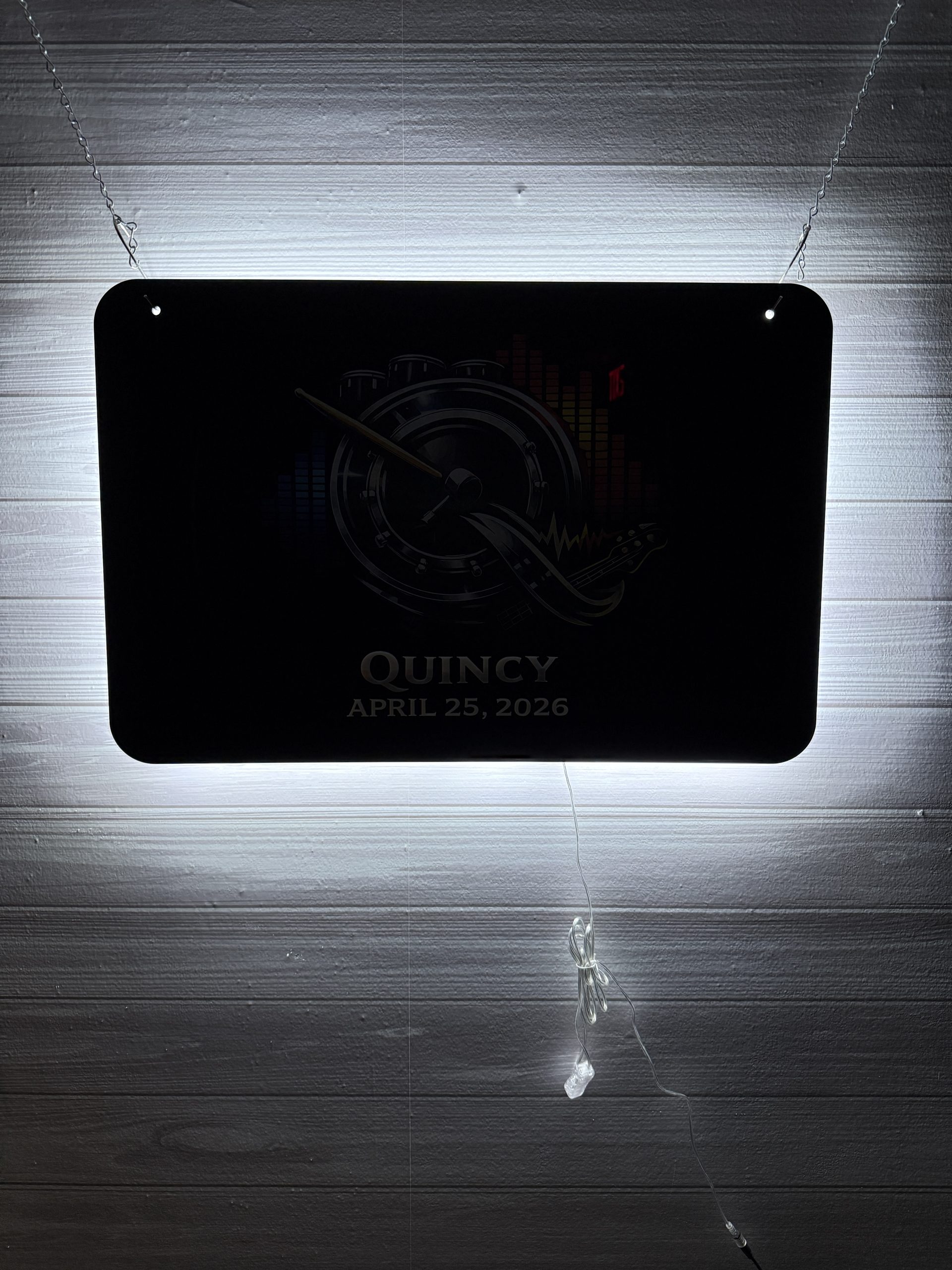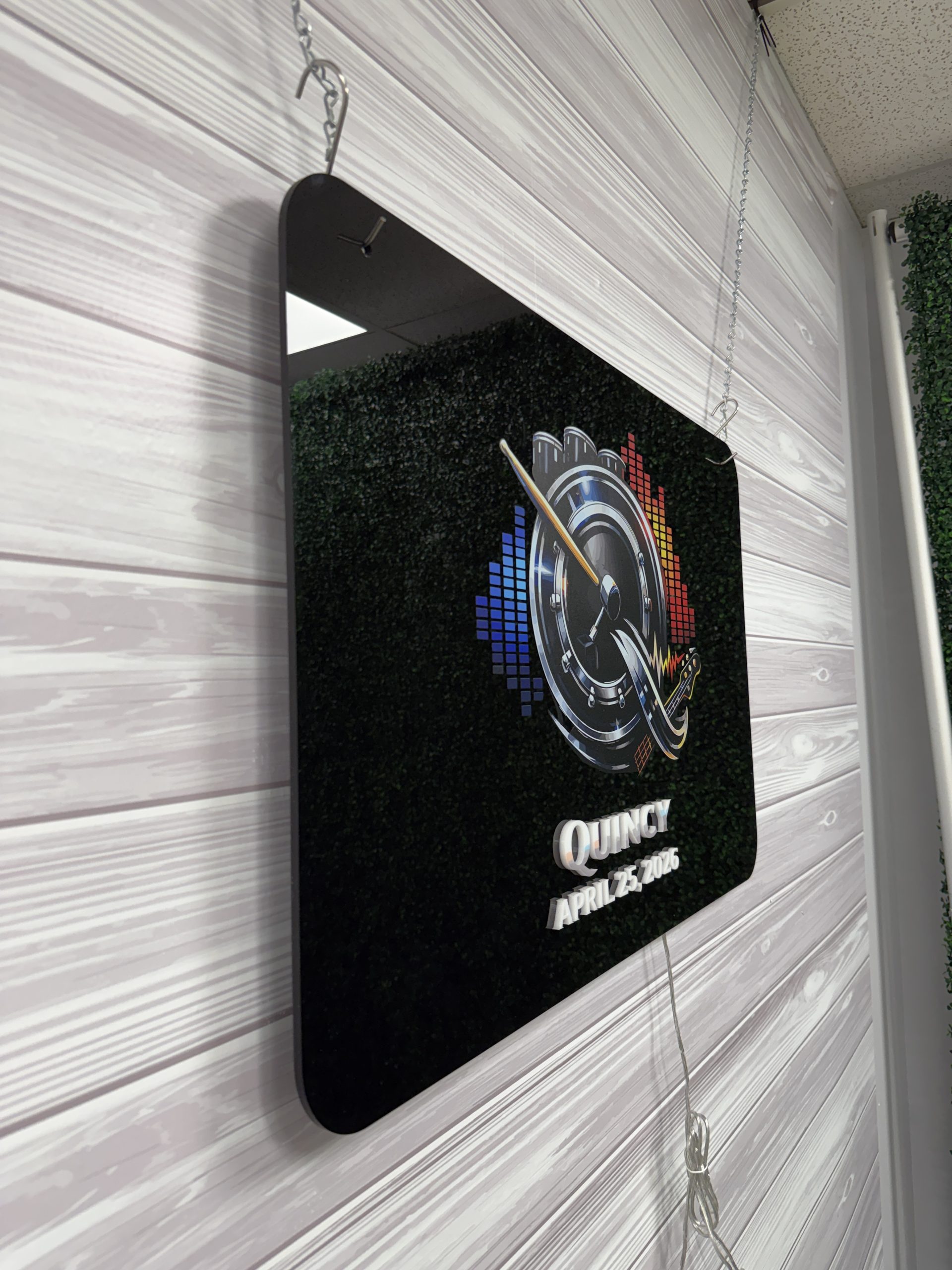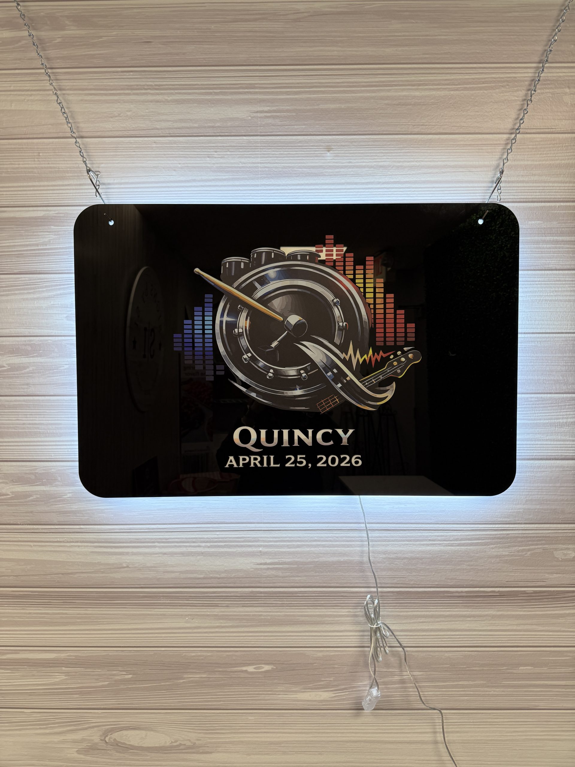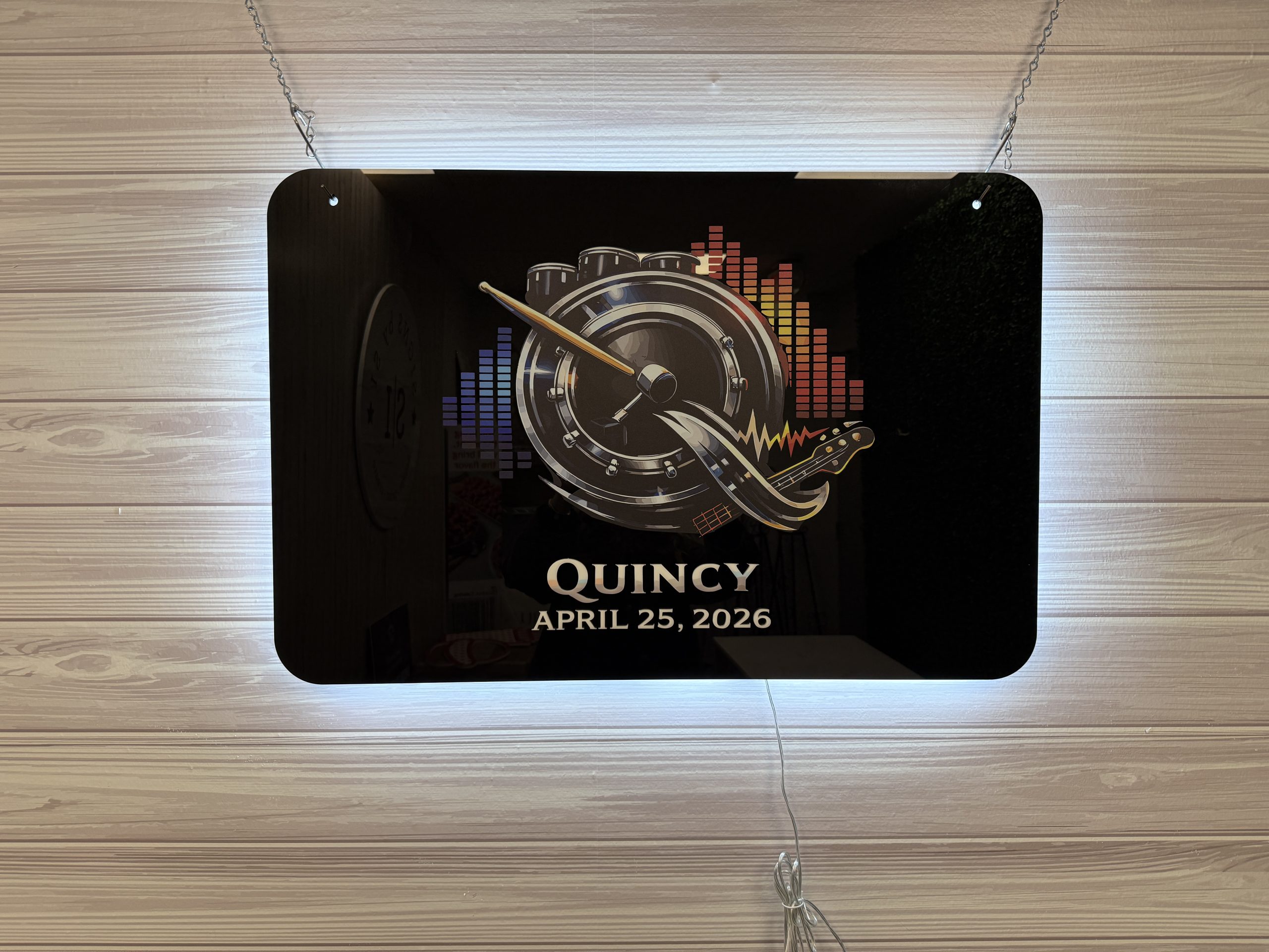 Featuring layered acrylic construction and soft LED backlighting, this sign creates depth, glow, and visual movement — making it a standout focal point for bat mitzvahs, Sweet 16s, birthdays, and music-themed events.