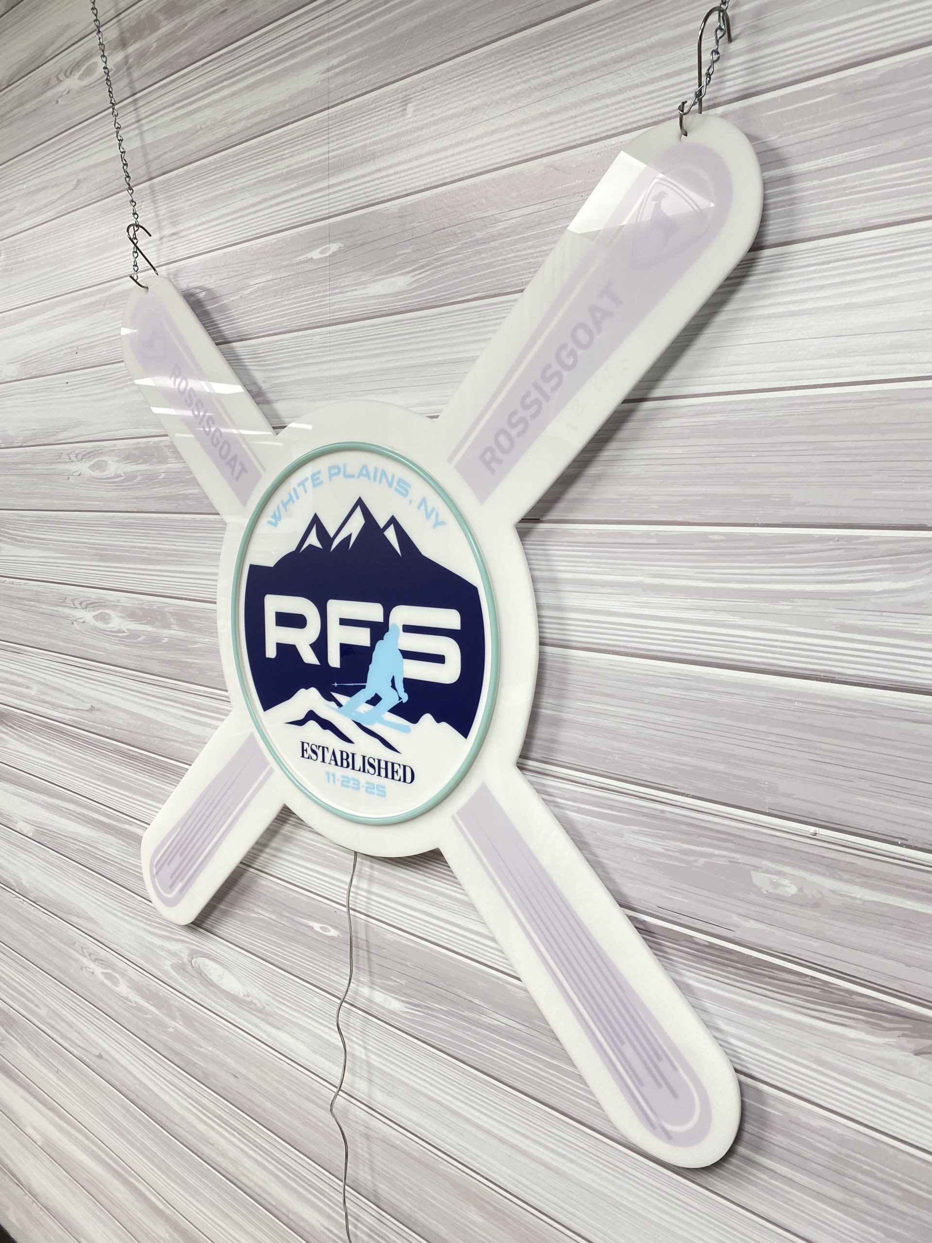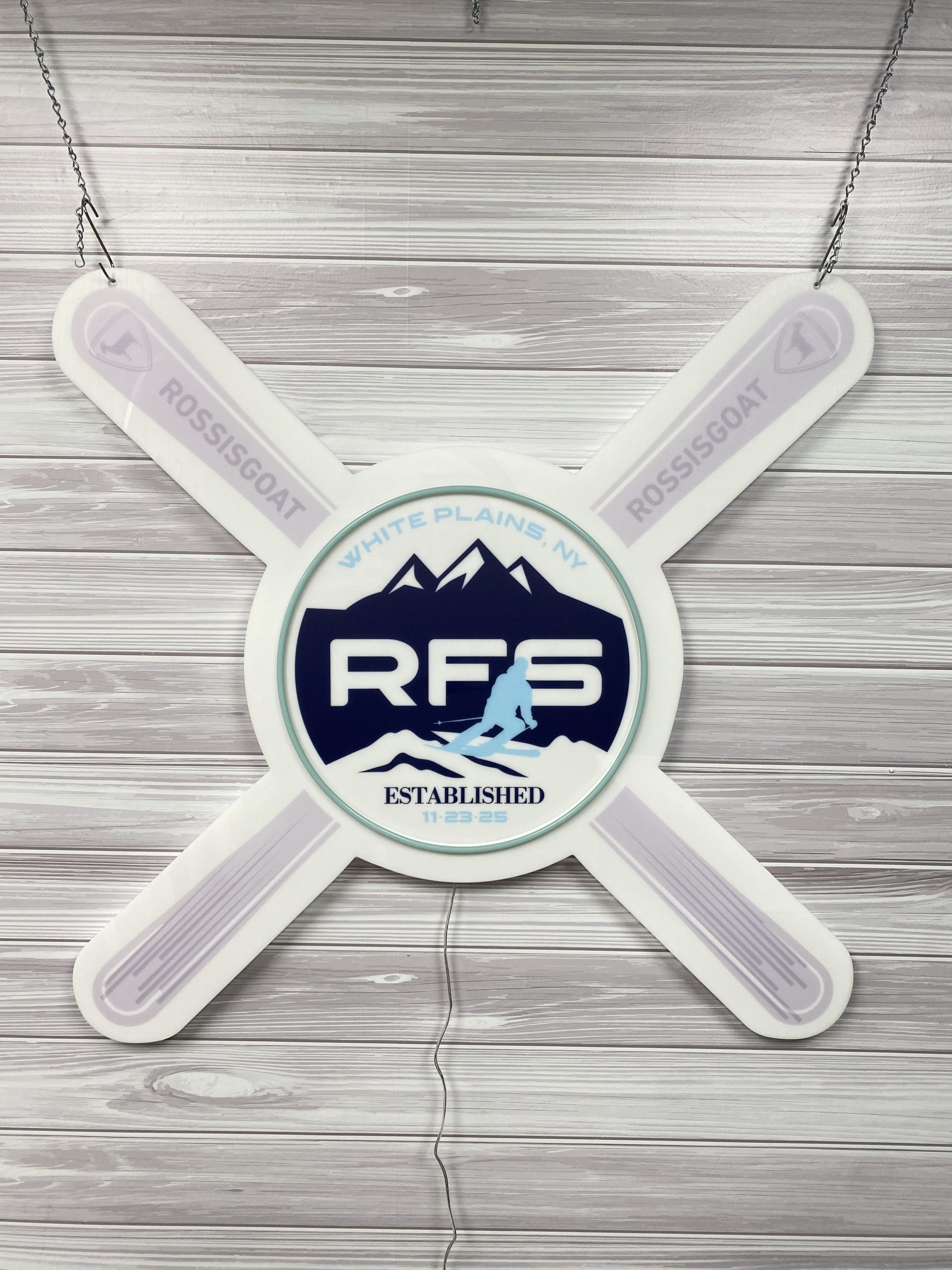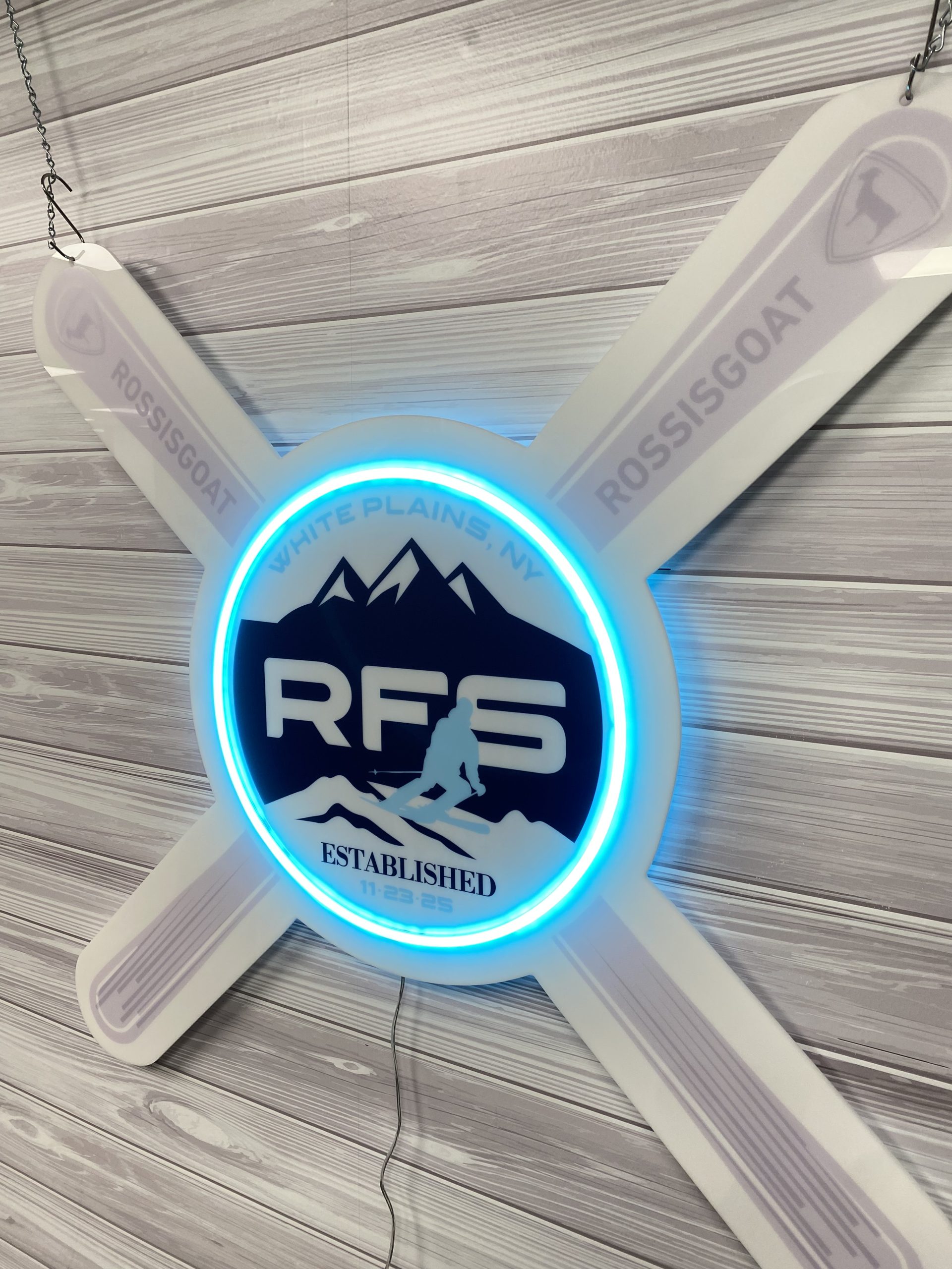 Ski | Skiing Theme Bar | Bat Mitzvah Sign in Boards are a meaningful gift that doubles as incredible party decor! Give your kids a work of art to cherish for years to come! Custom layered acrylic sign in board with neon accent.