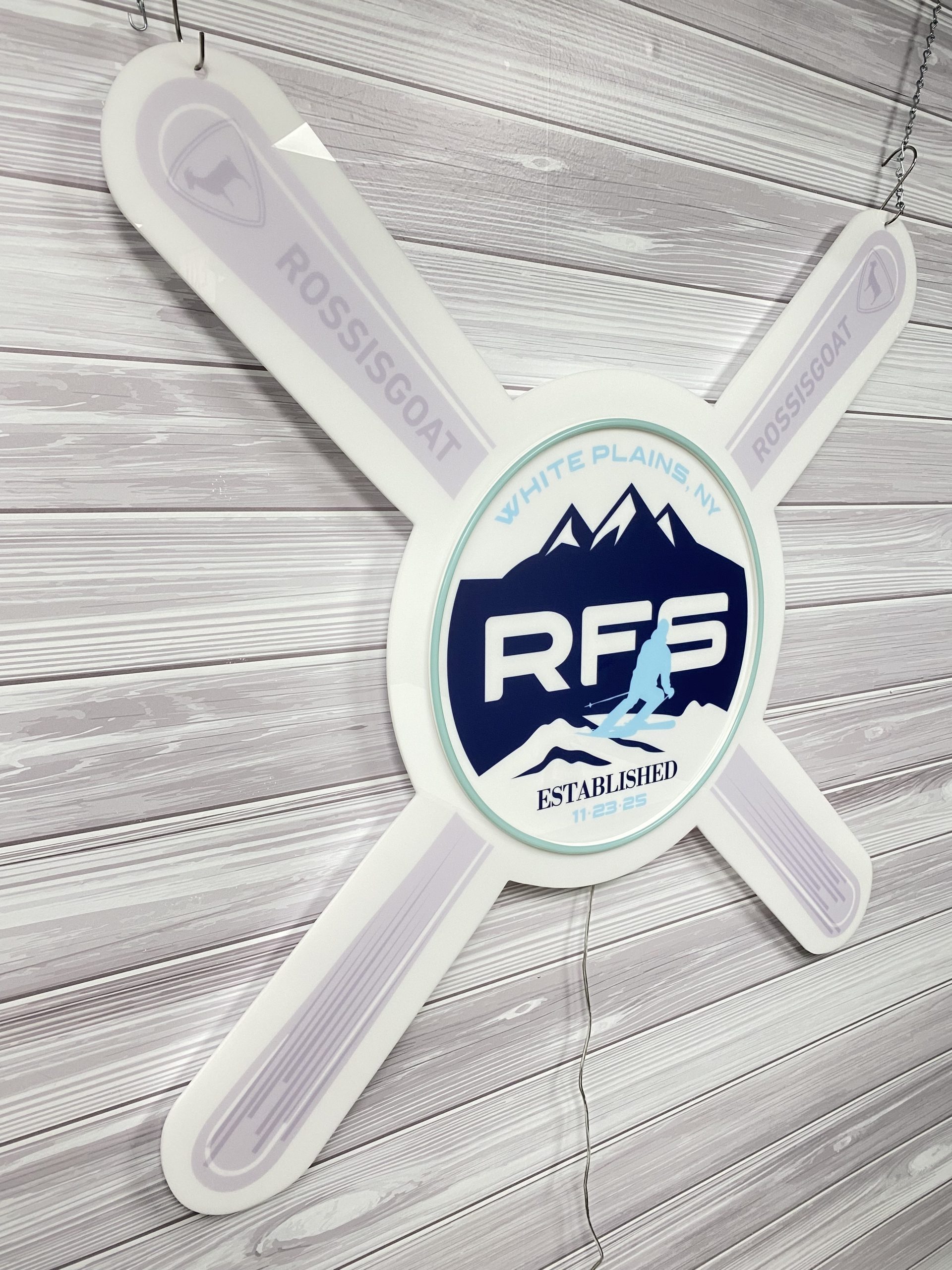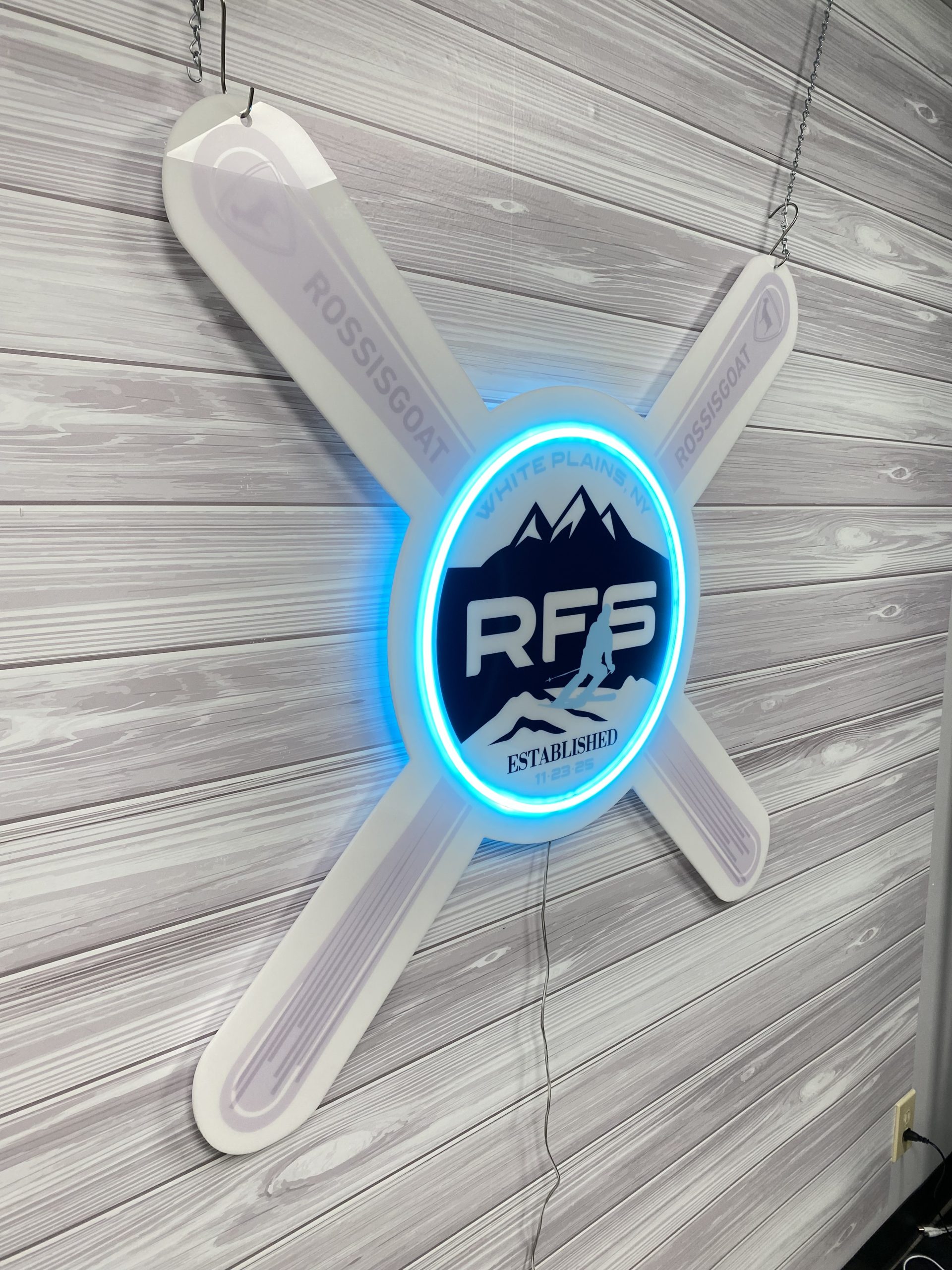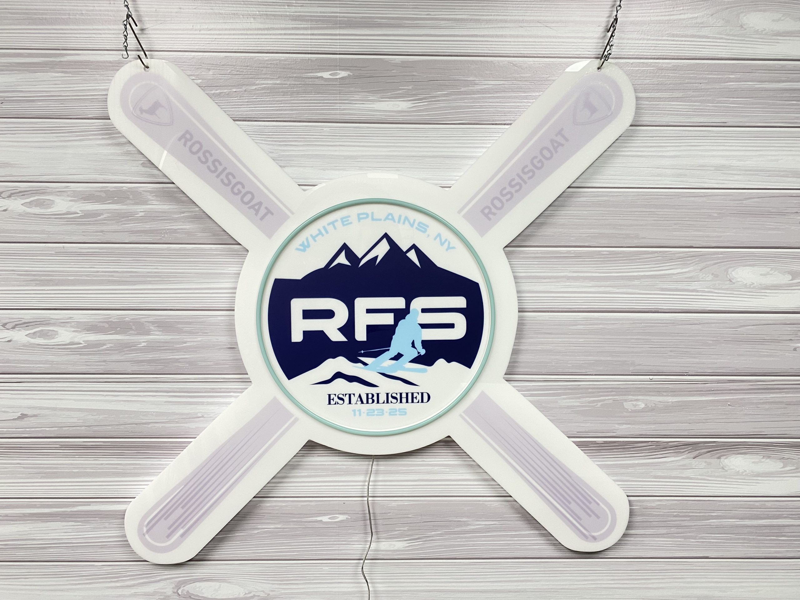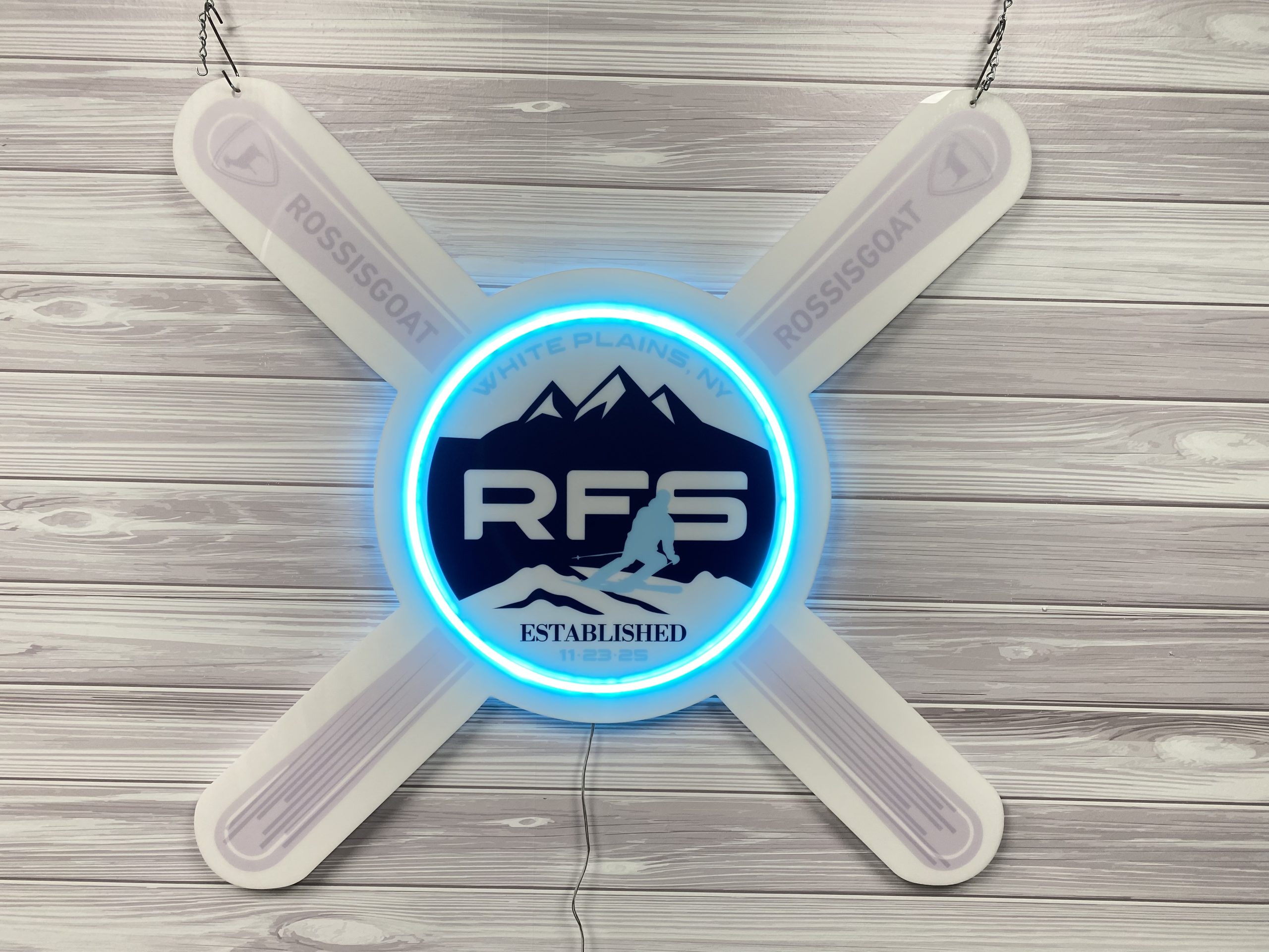 Ski | Skiing Theme Bar | Bat Mitzvah Sign in Boards are a meaningful gift that doubles as incredible party decor! Give your kids a work of art to cherish for years to come! Custom layered acrylic sign in board with neon accent.