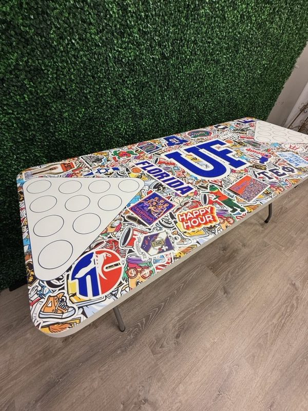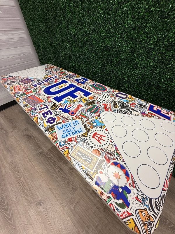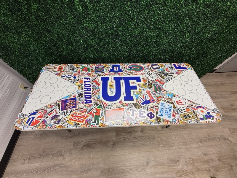 Take your pong game to the next level with our University of Florida Gators Inspired Theme Custom Beer Pong Table. Submit up to 20 images to create the perfect table. Guaranteed to bring fun to any party or tailgate, this one of a kind table folds for easy transport to and from your party destinations. The top of each table is coated to keep your beautiful designs from fading and ensure you’ll never have to cry over spilled beer.